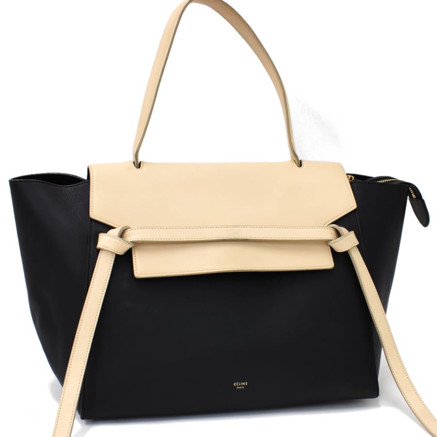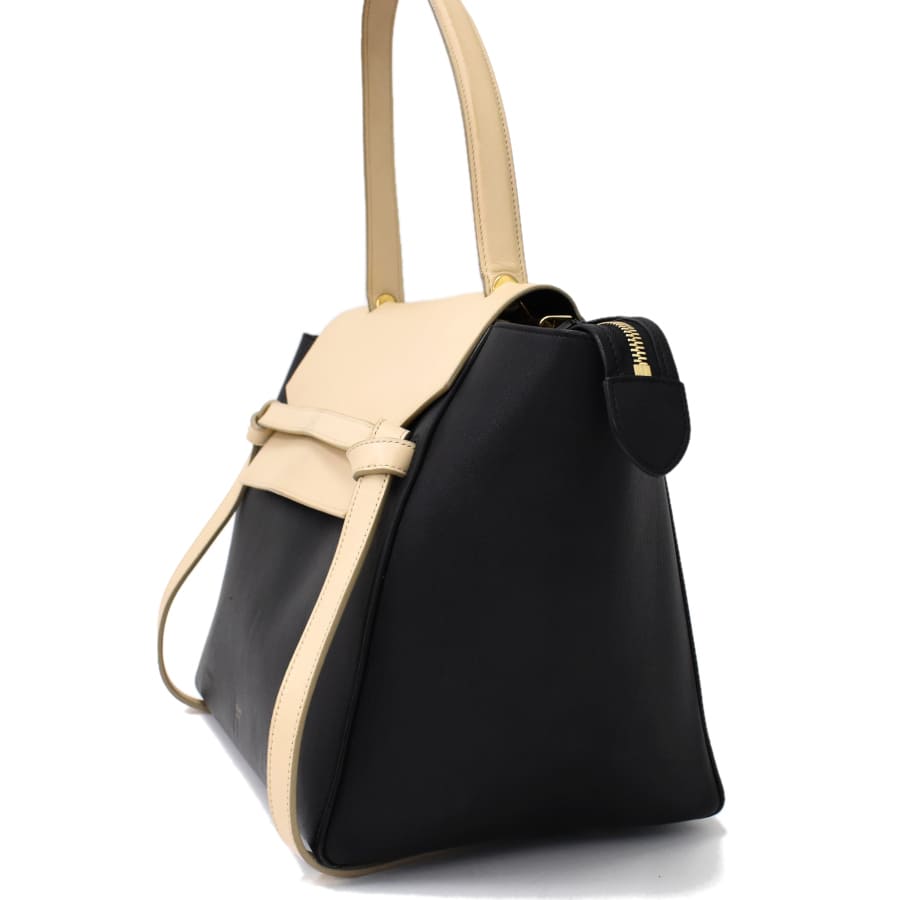 Celine Handbag Belt Bag Small Leather Black Beige Bicolor