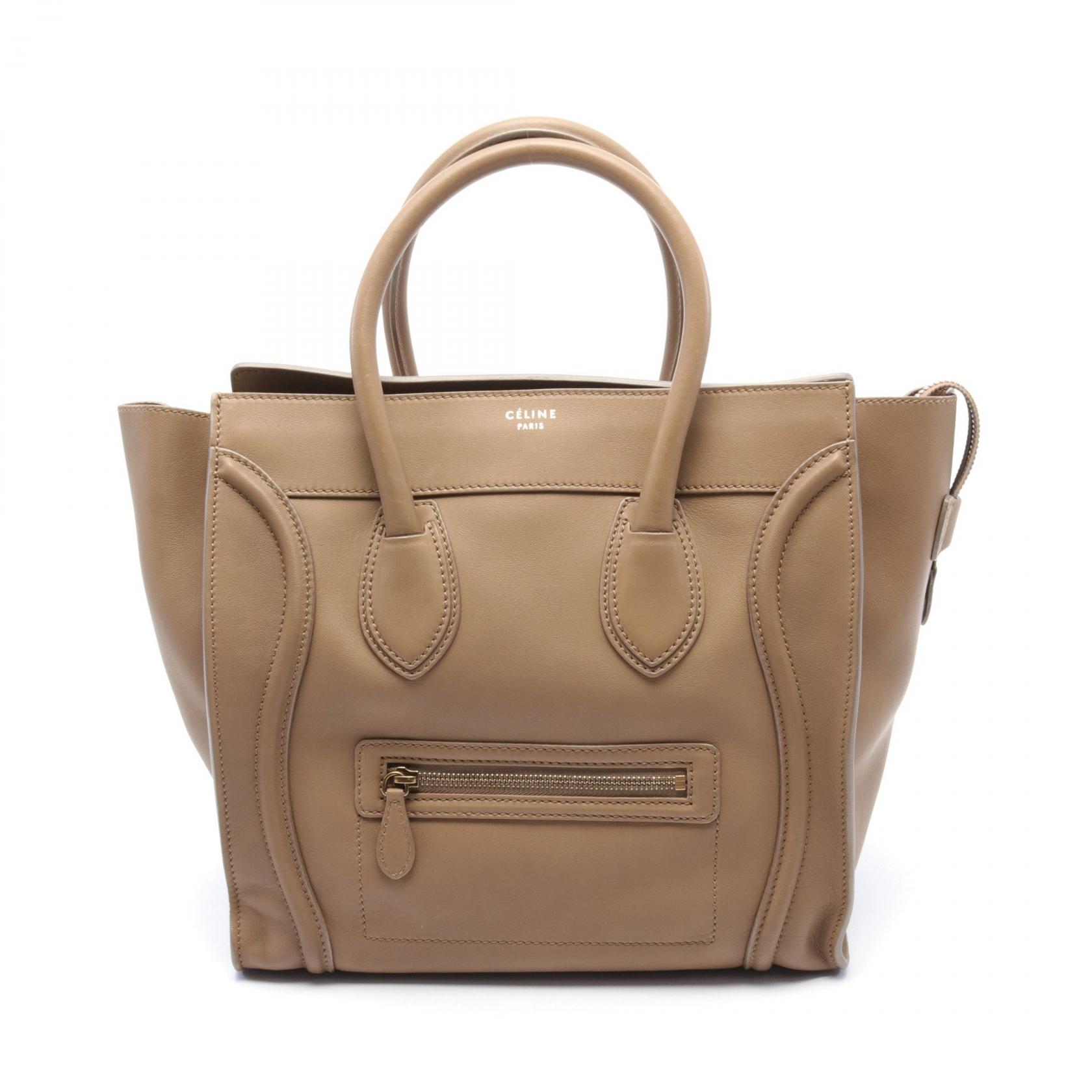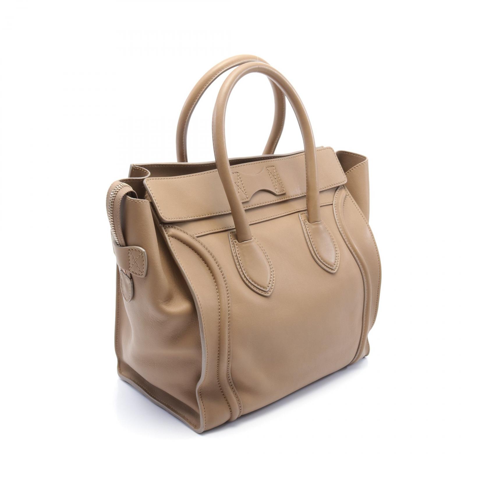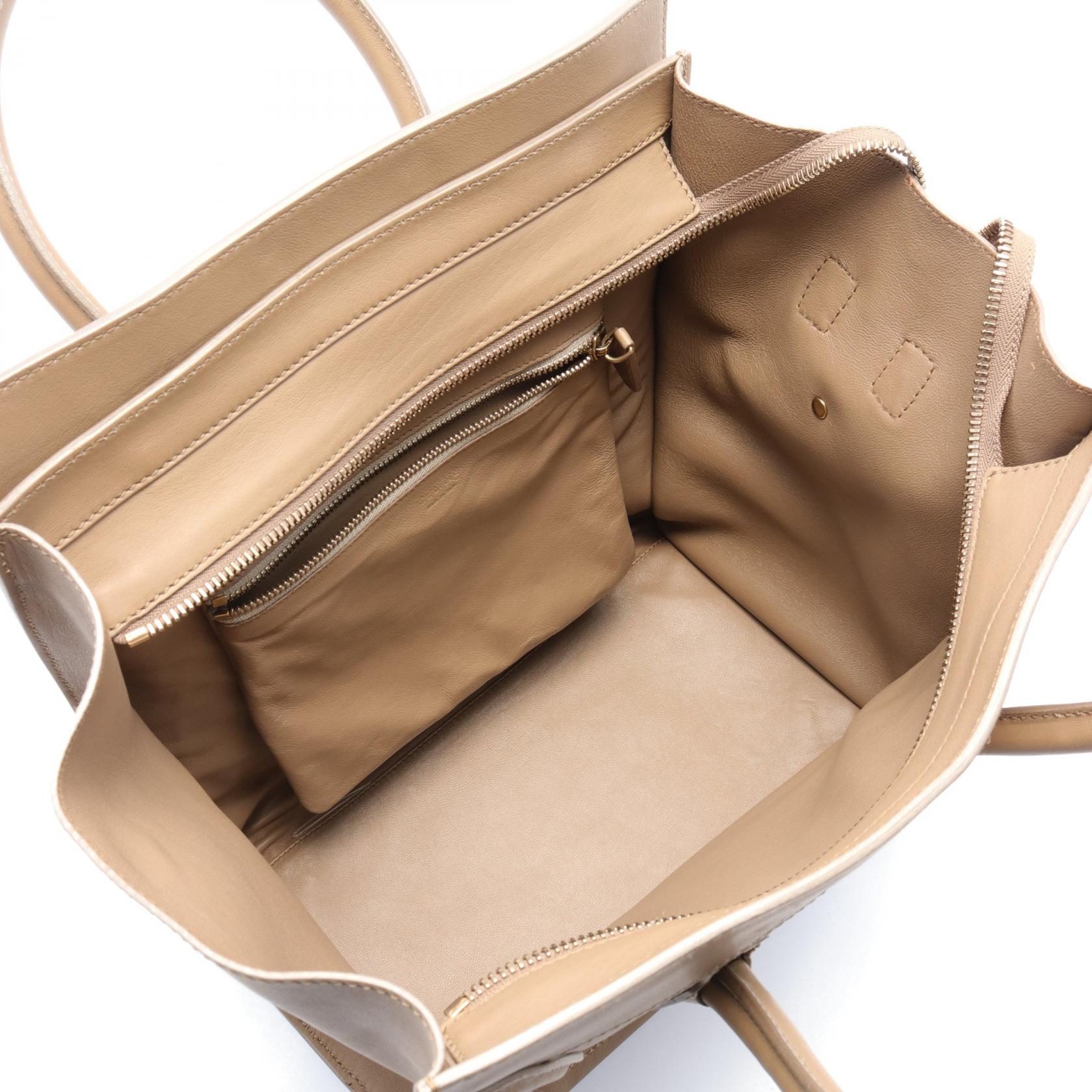 Celine Leather Mini Shopper Handbag Beige