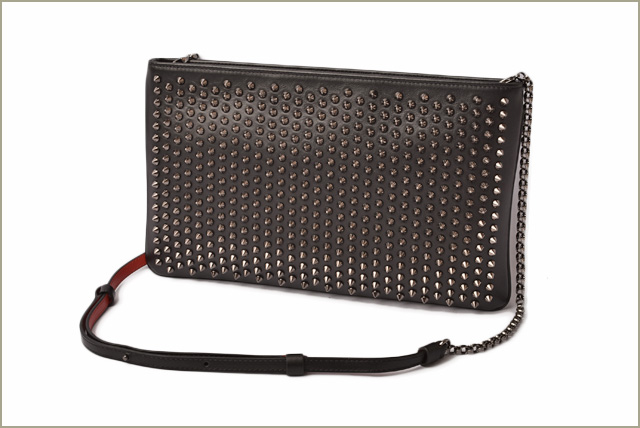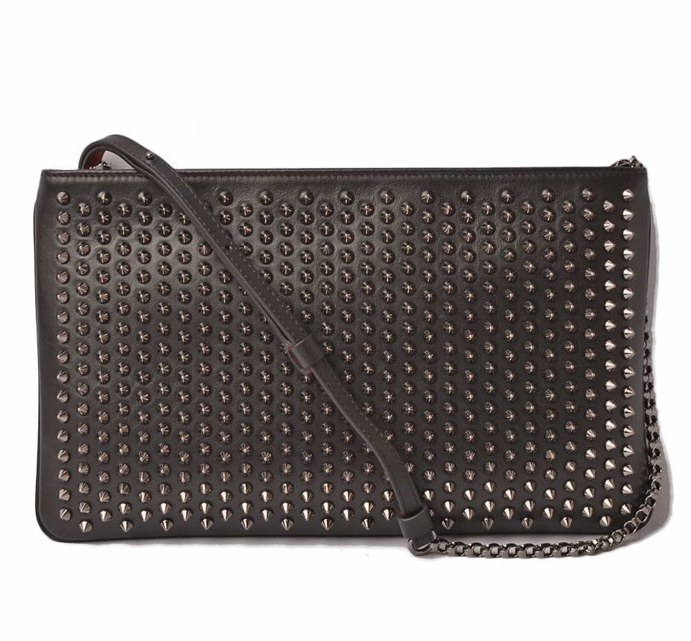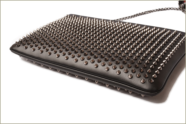Christian Louboutin Clutch Bag Shoulder Bag Loubiclutch Calf Spike Black Gunmetal