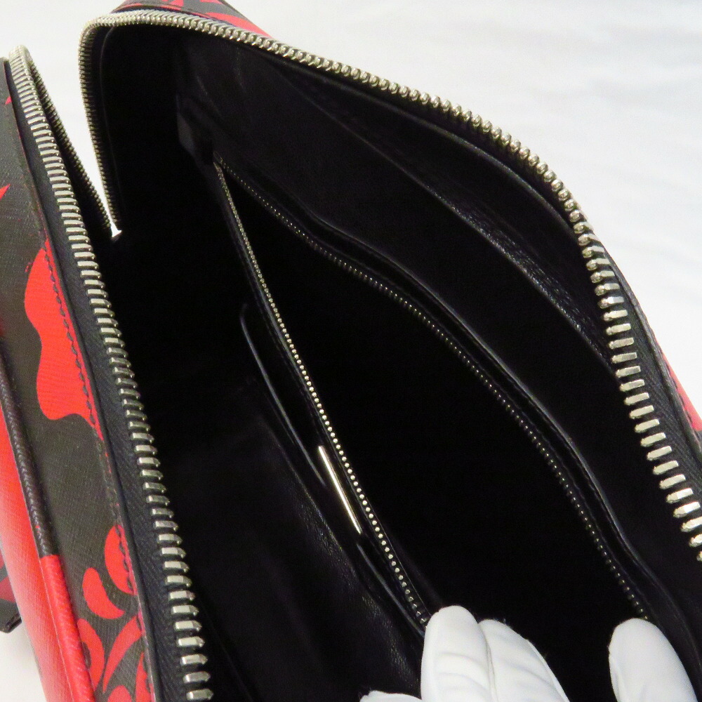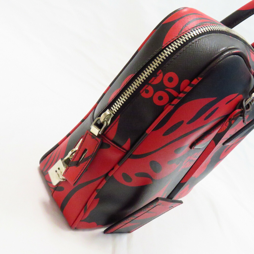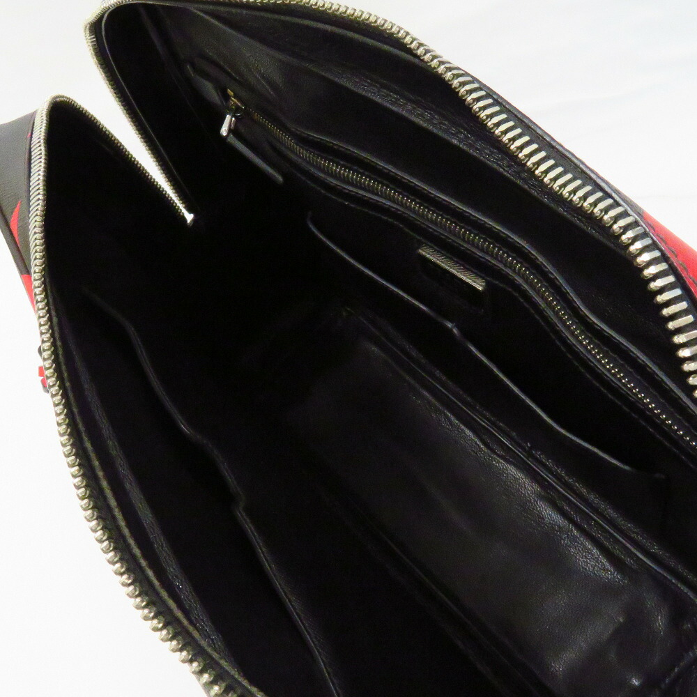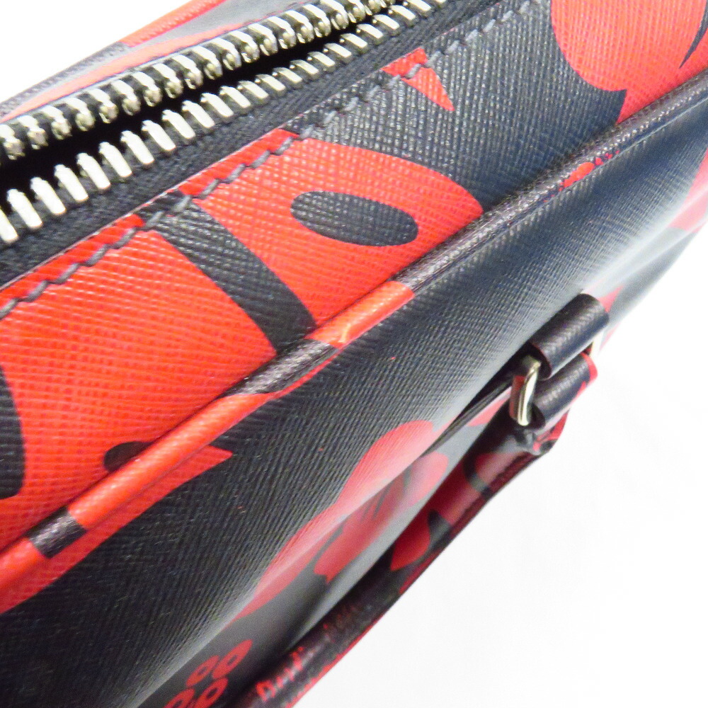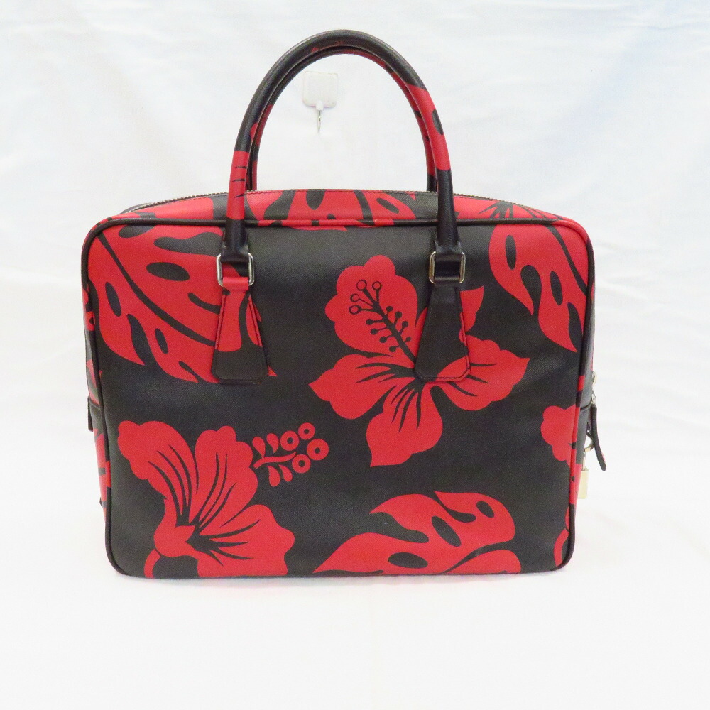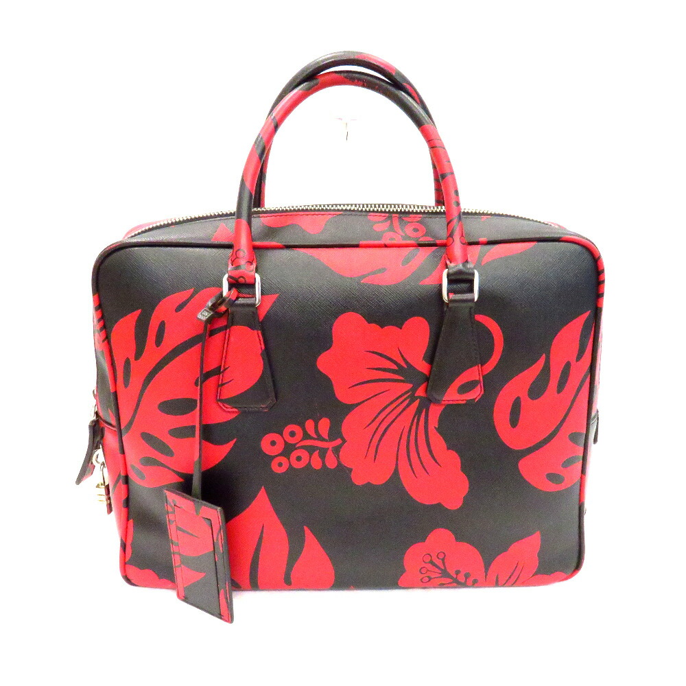 Prada Saffiano Briefcase Black Red