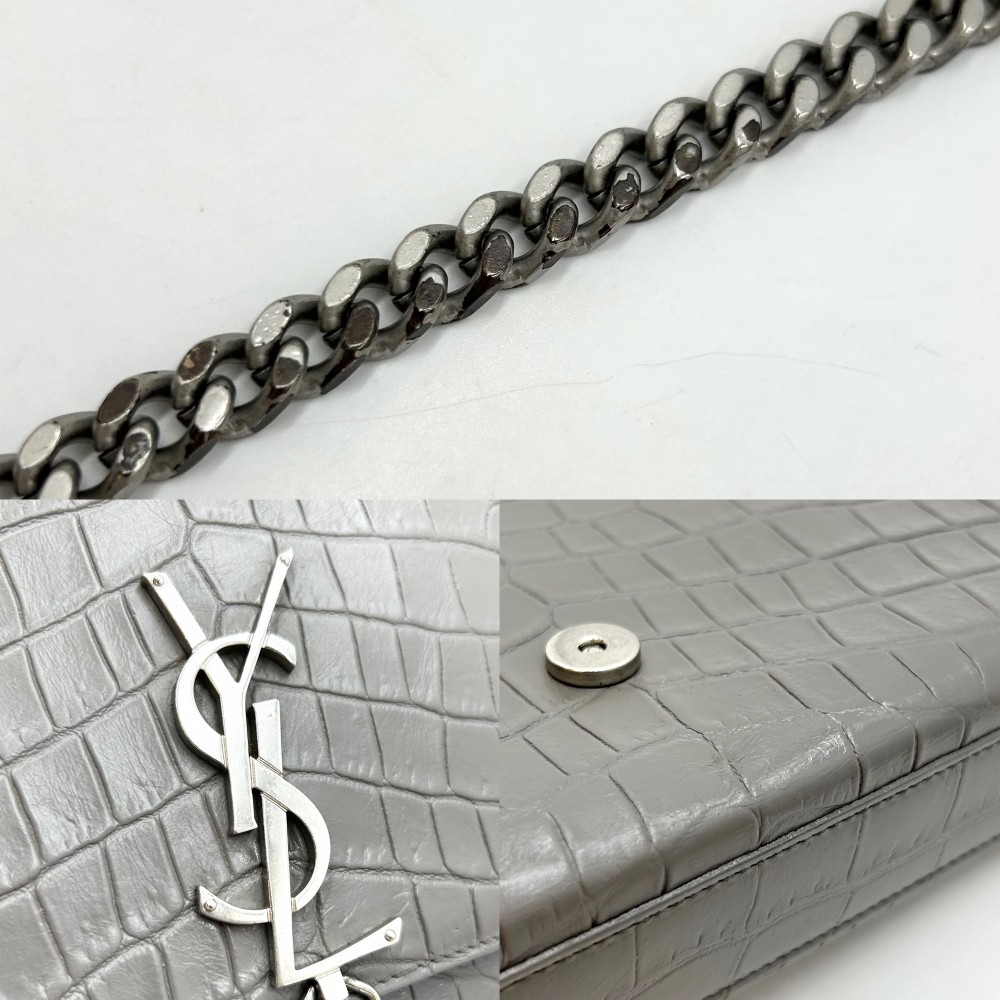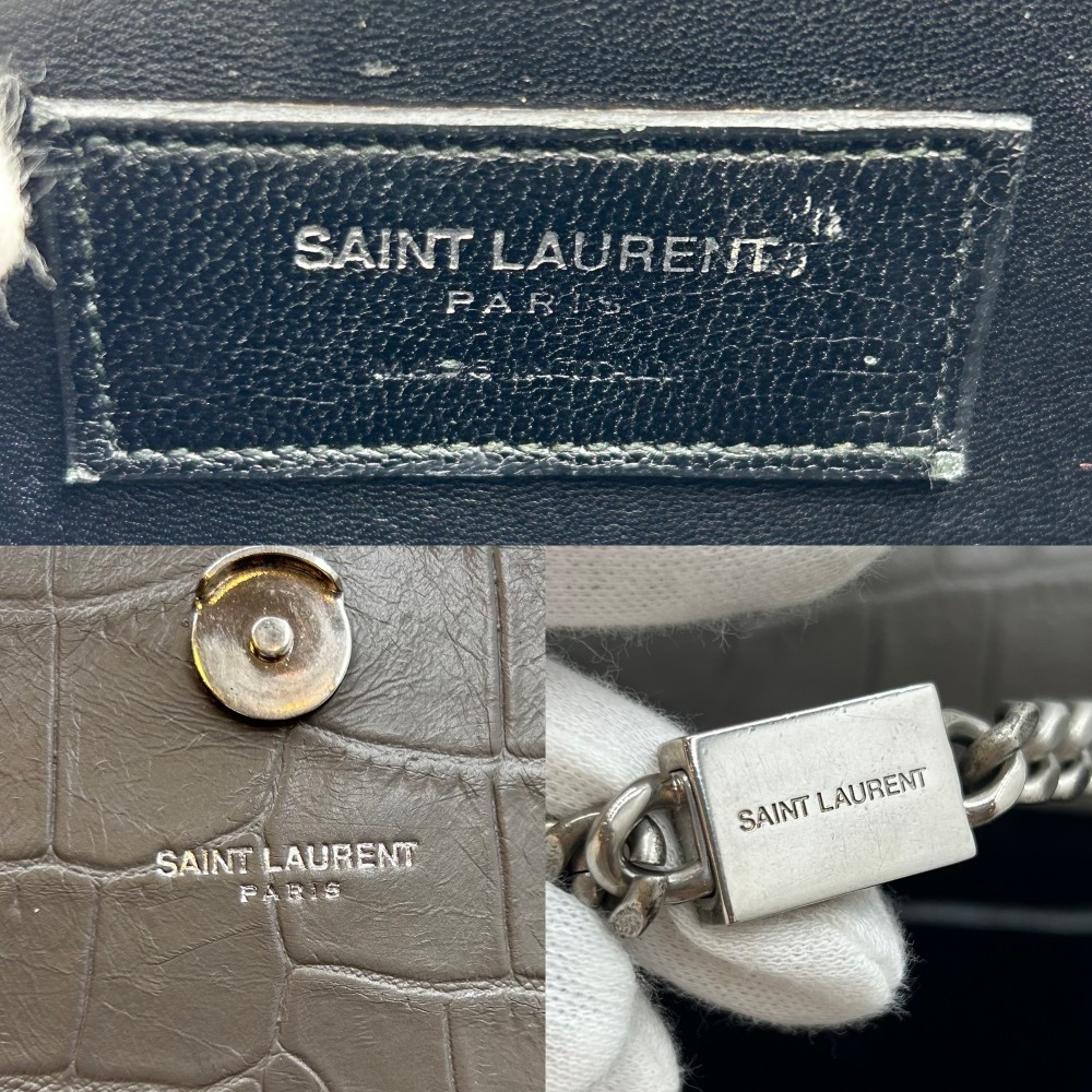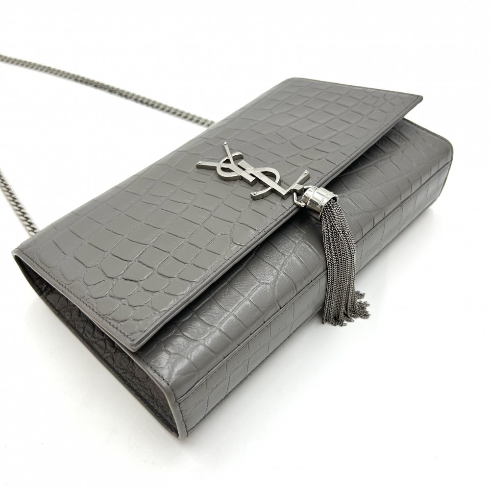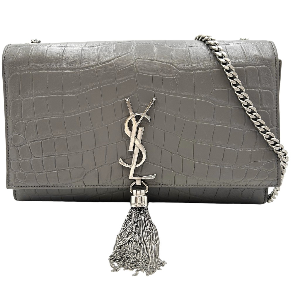 Saint Laurent Paris Kate Tassel Medium YSL Logo Chain Crossbody Bag Leather Gray